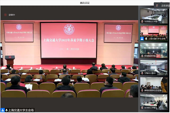 校长林忠钦以《锚定目标奋力前进 攻坚克难勇创一流》为主题作学校工作报告,回顾2021年秋季学期工作,提出面向未来的发展思考,对2022年春夏学期工作作出部署。